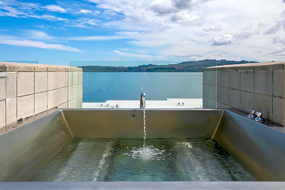This apartment offers lake views and a fully-equipped kitchen. There is a private deck and under floor heating.